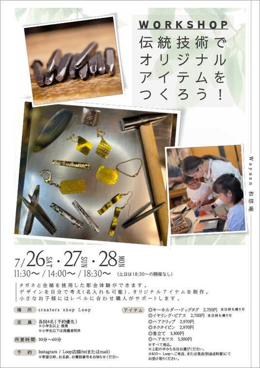 錺(かざり)職人の伝統の技をジュエリーやアクセサリーに展開する「Wayuan 和悠庵」が期間出店でLoopに登場!出店にあわせ、ワークショップも開催します。