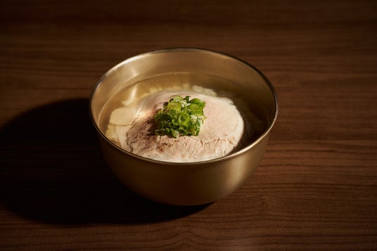 韓国の伝統的なスープであるコムタンは、牛肉、骨、内臓をじっくり煮込んだものが一般的。豚肉のスープは「クッパプ」と呼ばれ、しっかりとした味とのバランスをとるために唐辛子ソースがよく使われています。一方オクドンシクでは、豚ウデ肉と香辛野菜をじっくり煮込んだ独特のすっきりとしたスープが特徴。スープの味付けは塩のみで、デリケートな豚肉の風味を引き立て、一般的に骨や内臓の部分を含む重いクッパとは一線を画します。薄くスライスされた無塩豚肉がご飯の上にのせられ、食べる直前に75~80℃の最適な温度に保たれた熱いスープに静かに浸した状態で提供されます。