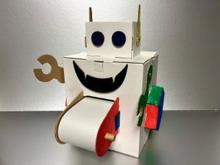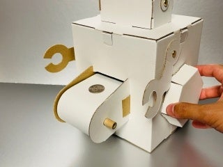 もう1つは貯金箱としても使えるダンボールで出来たからくりロボット貯金箱です。