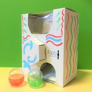 1つ目は、貯金箱としても使えるダンボールで出来たカプセルトイ販売機。