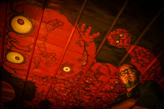 柳生忠平は香川県小豆島生まれ。幼い頃より妖怪に強い憧れを抱き、絵を描き始めました。進学、就職で離れていた小豆島に帰郷した柳生は、2005年に妖怪専門の絵描きになる「絵描鬼(えかき)」宣言をし、妖怪画家としての活動を始めます。頭の中に「妖怪製造装置(ようかいせいぞうそうち)」というものが存在するという柳生は、日本古来の妖怪のみならず、現代の妖怪を次々と生み出し描き続けています。2018年には、日本古来のアニミズム精神から現代までの妖怪像をアート作品とともに紹介する「妖怪美術館」の館長に就任。2024年には「妖怪美術館」を紙面上に再現した作品集『POP YOKAI 現代百鬼夜行 Contemporary Character Art of Japan』をフランスの出版社「Rockbook」より刊行しました。