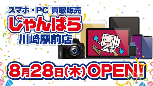 株式会社じゃんぱら(本社:東京都千代田区、代表取締役:小林 直純)が展開するスマホ・パソコンの買取・販売「じゃんぱら」は、「じゃんぱら川崎駅前店」を2025年8月28日(木)にグランドオープンいたします。