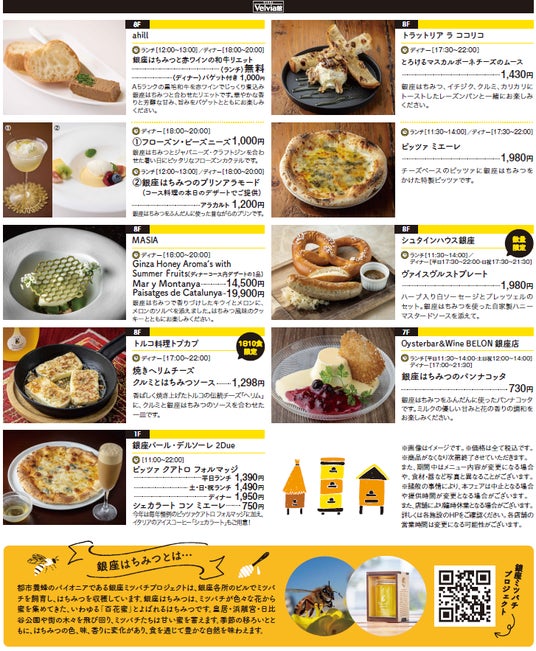 マロニエゲート銀座1屋上の養蜂所で採れた希少な「銀座はちみつ」を使った限定メニューを販売