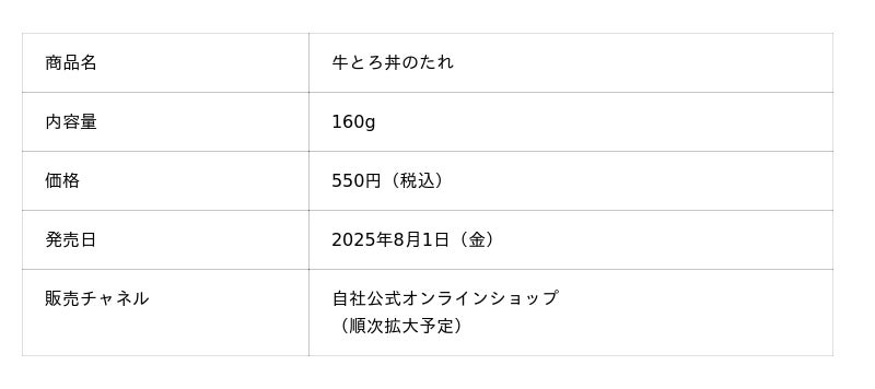 株式会社十勝スロウフード(北海道清水町、代表取締役:山本英明)は、看板商品「牛とろフレーク」にぴったりの専用たれ「牛とろ丼のたれ」を2025年8月1日(金)より販売開始いたします。