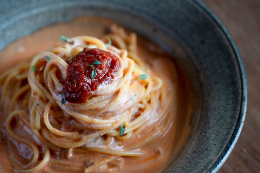 一般的なアラビアータは唐辛子とトマトをベースに作られます。「明太アラビアータ」の特徴は、辛味のベースを明太子の「つけ汁」に置き換えていることです。辛味の中に魚介出汁の旨味と明太子のコクが混ざった濃厚なソースに仕上がっています。