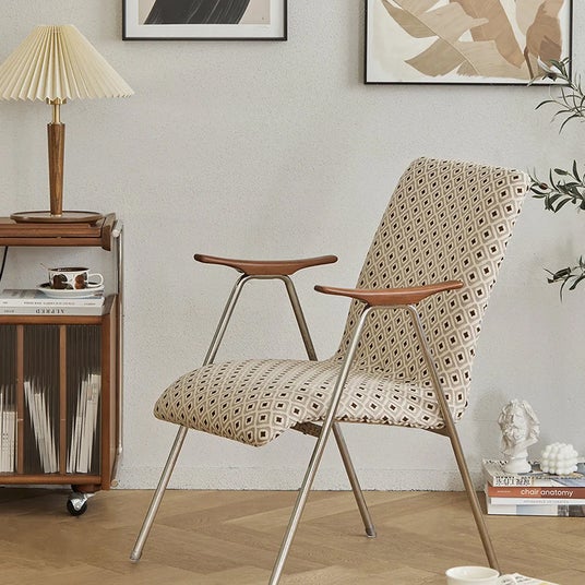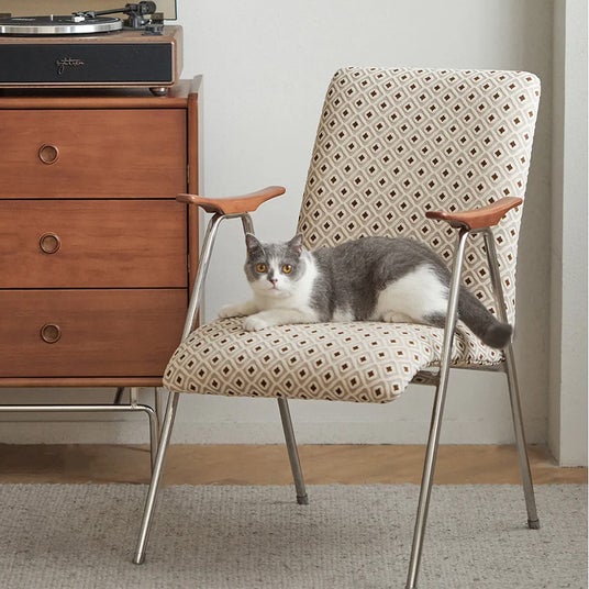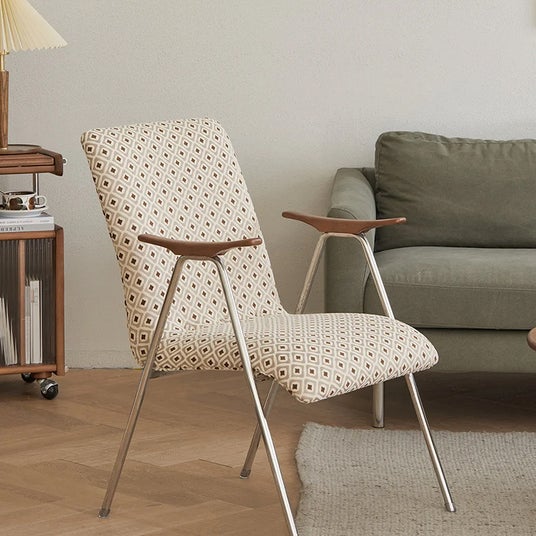 レトロとモダンさが融合したリクライニングチェア。高級感あるホワイトのジャカード生地と、布・金属・木を組み合わせた一体型デザインが空間に美しく映えます。高反発クッションで長時間でも快適な座り心地です。