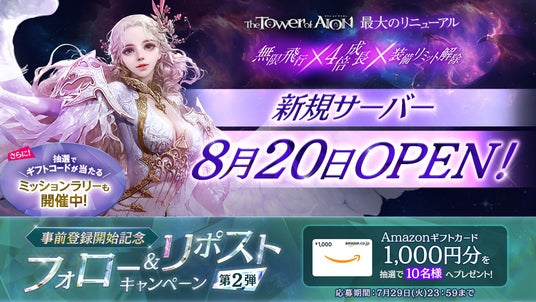 8月20日に予定しているタワー オブ アイオン史上最大のリニューアルアップデートの事前登録開始を記念して、フォロー&リポストキャンペーン第2弾を開催中です。