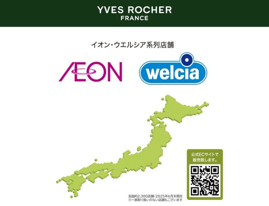 イオン、ウエルシア系列の店舗(全国2,300店舗/2025年6月末時点)及び公式オンラインストア(www.yvesrocher.jp)にて展開※。