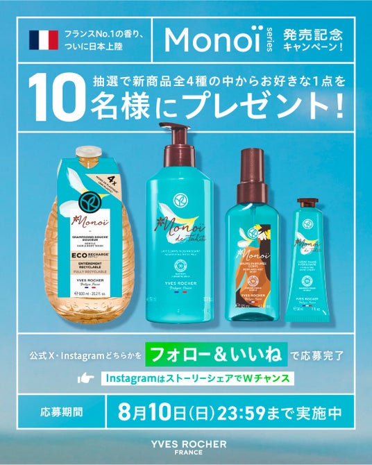 【イヴ・ロシェ】2025年7月25日(金)よりフランス人気No.1*1の「Monoï (モノイ)」ボディケアアイテムが遂に日本上陸!公式オンラインストア、全国のイオン、ウエルシア店舗※で発売開始。