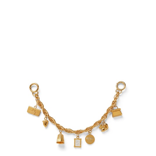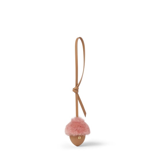 ウィメンズコレクションには、幼少期の無邪気さを象徴するようなリスとどんぐりのモチーフが登場。リスはフェンディ創業初期のシグネチャーのひとつとして、創業者アデーレ・フェンディ(Adele Fendi)の活力に満ちたパーソナリティを表しています。ゴールドのチェーンチャームには、アイコンバッグ「ピーカブー(Peekaboo)」や「バゲット(Baguette)」、100年の優雅な歴史を体現するインフィニティマークのコインまで、メゾンを代表するエレメントで飾られています。またフェンディ チャームのラインナップに欠かせない「FF」ロゴのポンポンチャームも、今期のメインカラーであるロマンティックなピンクで華やかに復活を遂げます。
