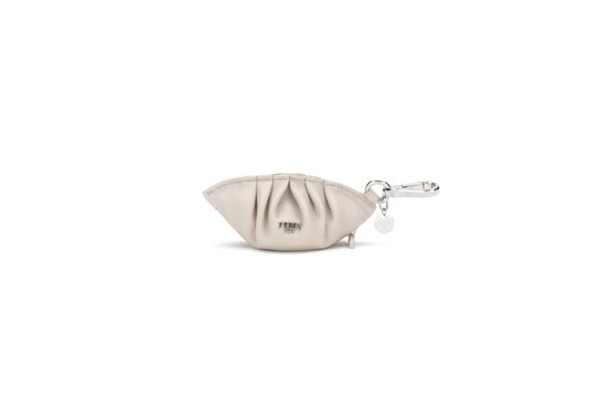 メンズコレクションで特に目を引くのは、イタリアのグルメをモチーフにした革新的なデザインです。マルチカラーレザーで繊細に表現されたフェットチーネや、ライトベージュのフルグレインレザーで仕立てられたダンプリングのモチーフには、メタル製の「FENDI ROMA」レタリングがあしらわれ、モダンなエッセンスを添えています。マルチカラーのシアリングと上質なレザーで象られたカプチーノカップは、内側にジップ付きの収納を備え、実用性と美しさを両立しています。イエローのフルグレインレザーで表現されたラビオリ、レッドミンクとグリーン&ホワイトレザーを組み合わせたキノコなど、豊かな食文化へのオマージュを感じさせるデザインが展開されます。