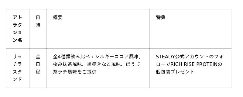 4.”リッチラスタンド”エリア~話題の完全栄養プロテインRICH RISE PROTEINを試飲~