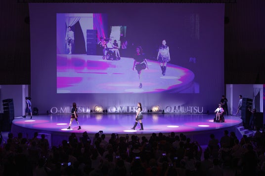 義足や車椅子の方を含む31名の多様なモデルによる“おむつコレクション”ランウェイです。