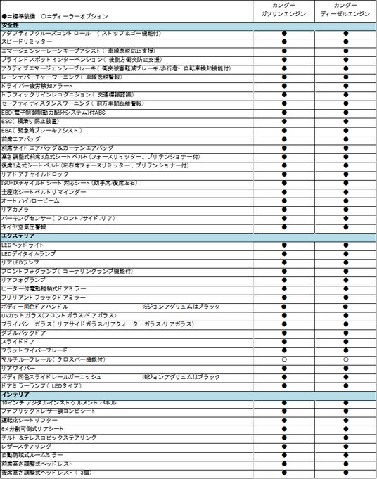 新型ルノー カングー(マイナーチェンジ)主要装備