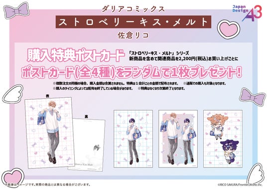 『ストロベリーキス・メルト』シリーズ新商品を含めて関連商品を1会計2,200円(税込)お買い上げごとに、購入特典としてポストカード(全4種)をランダムで1枚プレゼント。