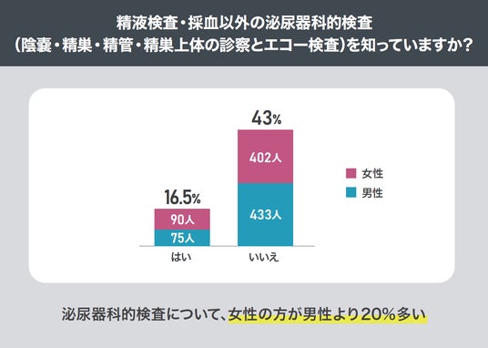- 精液検査や採血以外の泌尿器科的検査の認知度も低く、特に男性の理解が不足