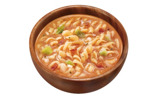 温かいスープに噛みごたえあるパスタや具材が入っており満足感のある、おきかえダイエット食です。