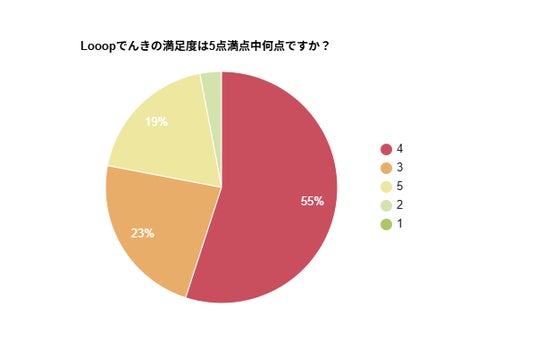Looopでんきの満足度を5点満点中で調査したところ、半数以上の人が「4」または「5」と高い満足度を示しました。