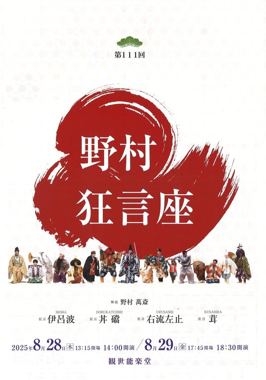 『第111回 野村狂言座(東京)〈2回公演〉』公演日程:2025年8月28日(木)~8月29日(金)
