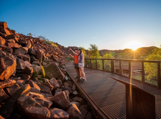 伝統的な所有者によるガイド付きツアーを通して、「ムルジュガ」の豊かな文化を体験できます。数千世代にわたりこの土地とともに生きてきた人々の視点から、古代の岩絵を目にできる貴重な機会です。「ムルジュガ」の赤い岩の上を歩くことで、世界に認められた、地球上で最も古い物語の一つに触れることができます。ガイドツアーは「ムルジュガ・アボリジナル・コーポレーション(Murujuga Aboriginal Corporation)」が運営しており、「バーラップ半島」への玄関口となる町「カラサ」から参加できます。