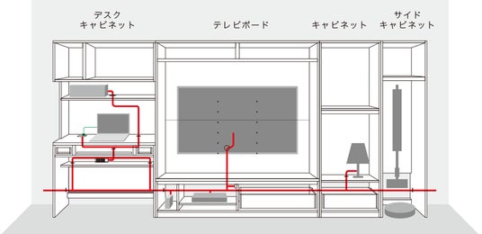収納内部に配線経路を確保することで、テレビやデスク周りをすっきり整理でき、見た目を美しく保ちながら、使いやすさも向上します。