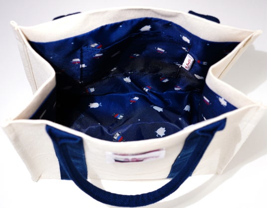 商品説明:「ハーバーの日」を記念した特別セットが登場!キャンバス生地のトートバッグは、ハーバー5個入や500mlペットボトル、お弁当も入るちょうどいいサイズ感です(約W280×H250×D150mm)。ワンポイントには「クイーンメリーII」の織ネームタグを、内側にはさまざまなポーズの「ハーバーくん」連続柄をあしらい、遊び心のあるデザインに仕上げました。セットには、定番の「横濱ハーバーダブルマロン」5個入りを入れ、普段使いにも贈り物にもおすすめの限定記念セットです。