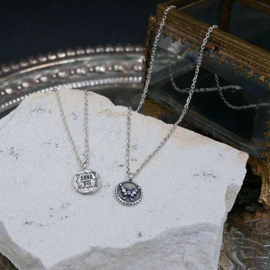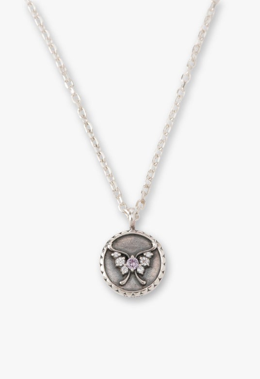 相反するテイストのミックスが魅力なANNA SUIのアクセサリーより、シグネチャーモチーフである蝶をあしらった、シルバーのコインネックレスが登場。