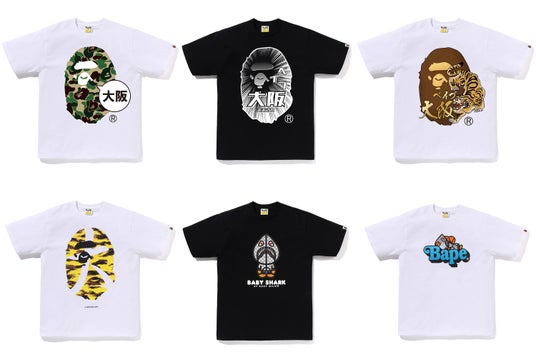 また、大阪エリア限定デザインTシャツを本ポップアップにて先行発売いたします。大阪らしい虎のモチーフやAPE HEADを融合させた迫力のあるグラフィックTシャツ、大阪のタイポグラフィーと漫画風エフェクトを効かせたロゴデザインTシャツ、キュートなBABY MILO(R)など、大阪らしさ溢れる6デザインがラインアップ。