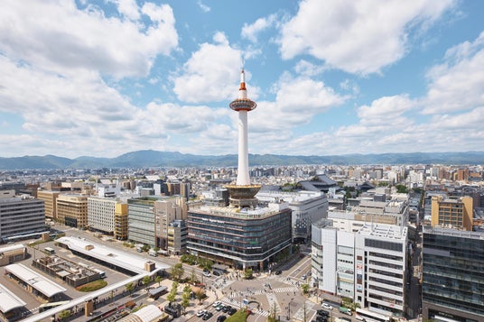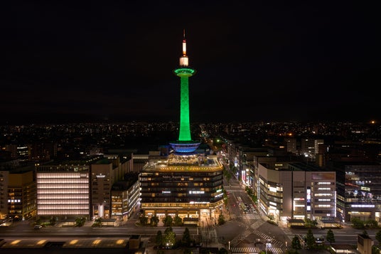 “産業・文化・観光の一大センターとして活用し、京都市の伸展に貢献する"ことを目指し建てられたニデック京都タワー。白くなめらかなフォルムは鉄骨を使わないモノコック構造で、海のない京都の街を照らす灯台をモチーフにしています。京都市街で一番高い地上100メートルの展望室からは、古都・京都の絶景パノラマを360度見渡せます。