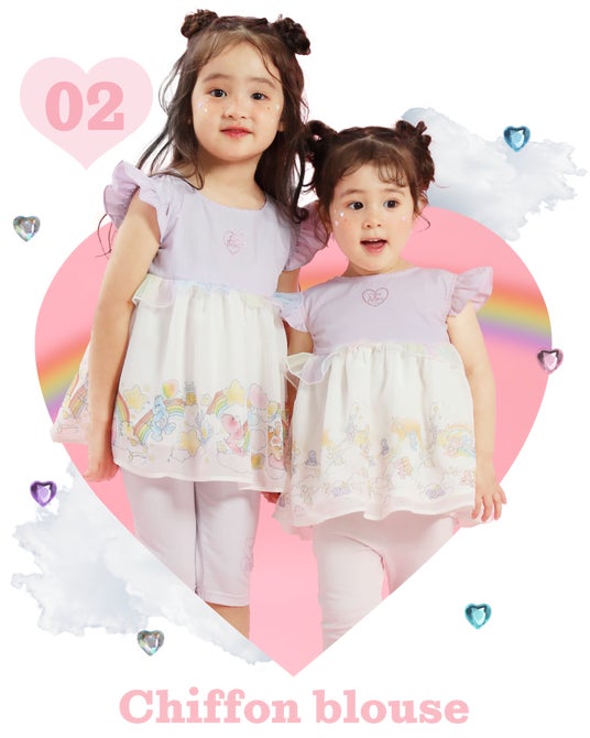 ドリーミーなケアベアを裾にプリントしたシフォンブラウスです。
