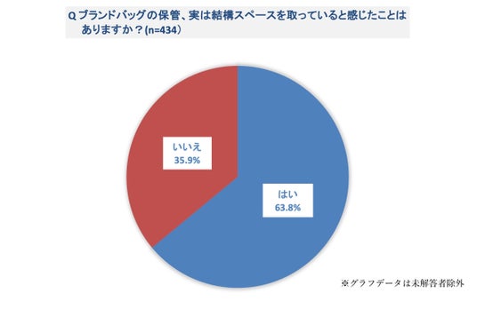 ブランドバッグが「結構スペースを取っている」と感じたことがあるか尋ねたところ、63.8%の女性が「はい」と回答しました。クローゼットや収納スペースが限られている状況で、複数のバッグを所有している場合、特にその問題が顕著になることが伺えます。一方で、「いいえ」と回答した人は35.9%であり、保管場所の確保が個々の環境に左右されていることが分かりました。