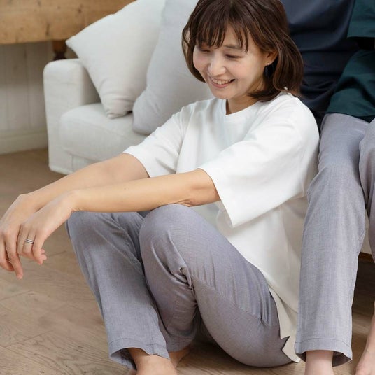 希少な超長綿の三子糸トップスと伸びるガーゼのスマートルームパンツ