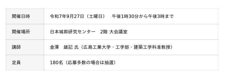 - インターネット申込(電子申請)7月15日(火曜日)から8月25日(月曜日)午後5時まで城郭研究室ホームページ「イベント」内のリンクからお申込みください。