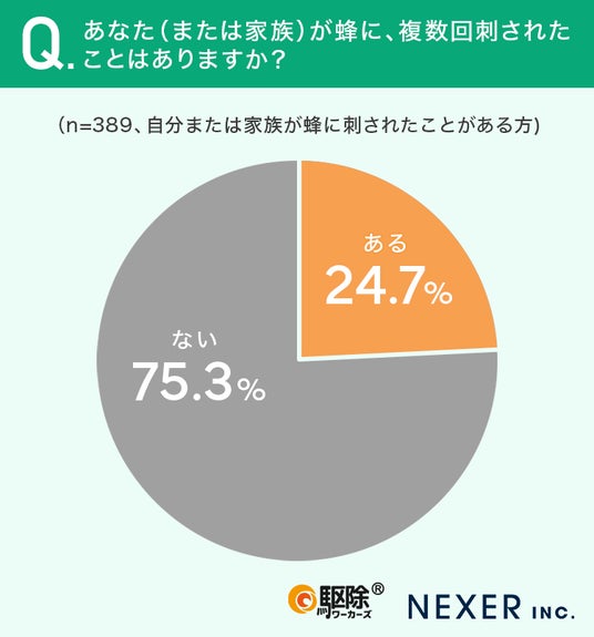 ■24.7%が、自分または家族が蜂に複数回刺されたことが「ある」