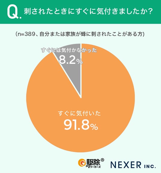 91.8%と9割以上の方が、刺された時に「すぐに気付いた」と回答しています。