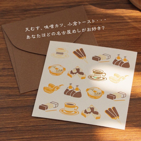 名古屋うまいもん箔押しカードプレゼント1,000円以上お買い上げのお客様に名古屋めしの可愛いイラストとワンポイントの箔がきらめく限定ノベルティをプレゼントいたします。