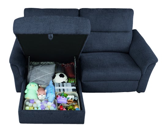 カウチの座面下に大容量の収納スペースを設けました。力を入れず、片手で開閉できますので、物の出し入れが簡単にできます。