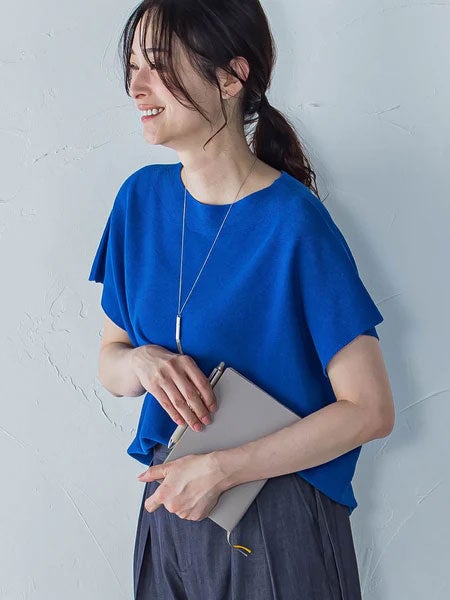 スッキリとしたシルエットでありながら程よいゆとりがあり、体のラインを気にせず着られ、忙しい日もサッと着るだけで、きれいに仕上がります。ラフすぎず、かっちりしすぎない。柔らかな肌ざわりと程よいゆとりが、気負わない大人のデイリーコーデにもぴったり。