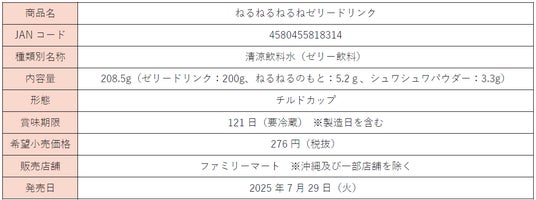 トーヨービバレッジ株式会社(本社:東京都渋谷区、代表取締役社長:熊谷 聡)は、クラシエ株式会社(本社:東京都港区、フーズカンパニープレジデント:橋本 光央)と共同開発した「ねるねるねるねゼリードリンク」を、2025年7月29日(火)より全国のファミリーマートにて発売致します(一部地域・一部店舗を除く)。