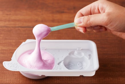 粉と水を混ぜると色が変わって膨らんで、驚き体験ができるふわふわお菓子です。