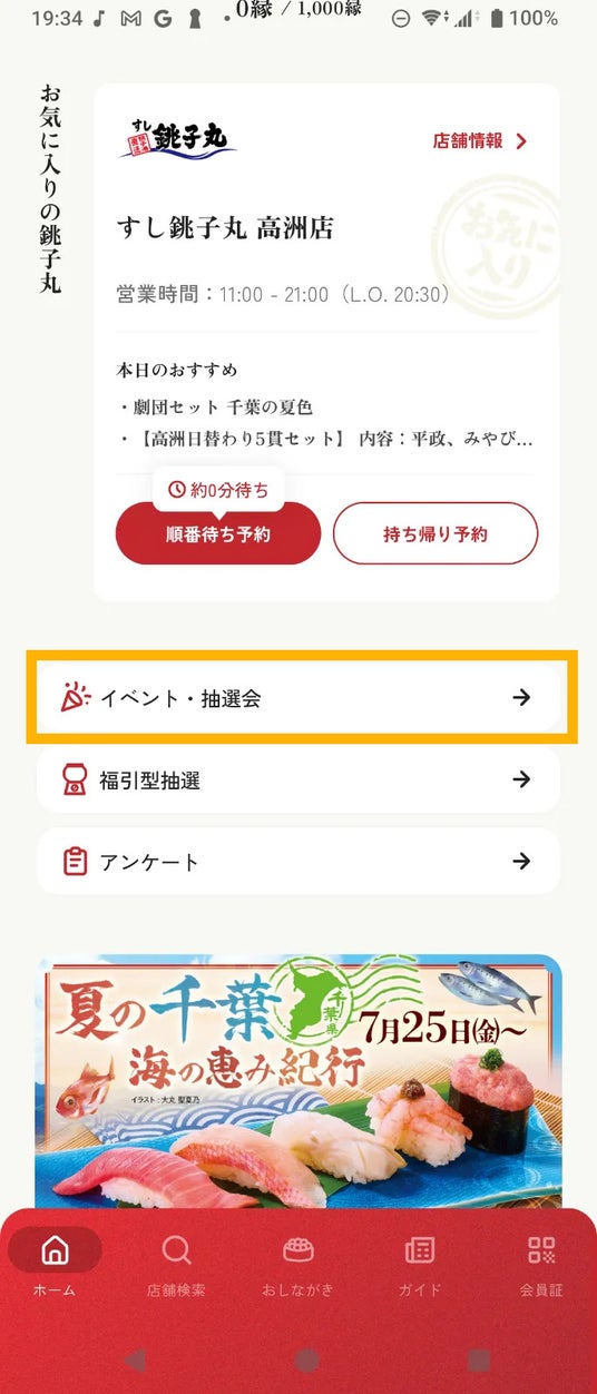 銚子丸公式縁アプリ「イベント・抽選会」よりご参加いただけます(全10問)。お手持ちのスマートフォンにて、縁アプリのインストールおよびアップデートを実施してください。