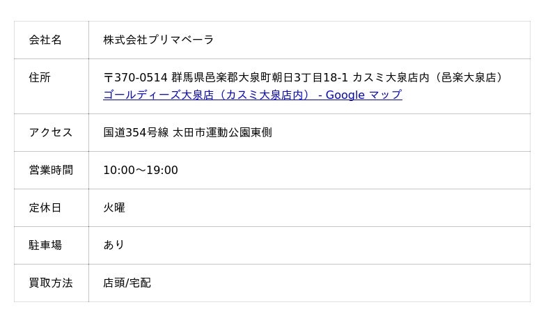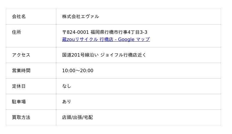 持ち込むには本数が多かったため自宅まで引き取りに来てもらいました。丁寧に対応してくださり、買取価格も分かりやすく説明してくれました。また機会があればこちらにお願いしようと思います。出展:Googlemap
