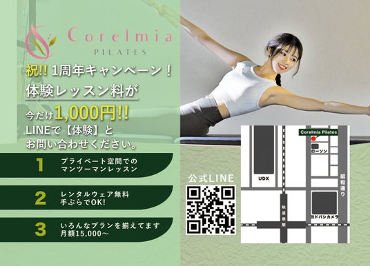 【秋葉原】人気マシンピラティスが“1,000円”で体験できる!1周年記念キャンペーン延長決定|Corelmia Pilates