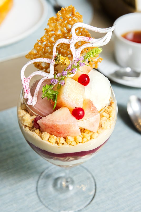 【アルマーニ / カフェ 表参道】香りで味わう、夏の果実とハーブのマリアージュ。8月限定「白桃 フロマージュ レモンバーベナーのパフェ」