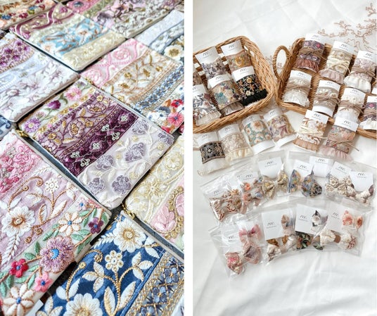 インド刺繍を活かしたポーチやヘアアクセサリーが現在コトモノマルシェでも大人気。