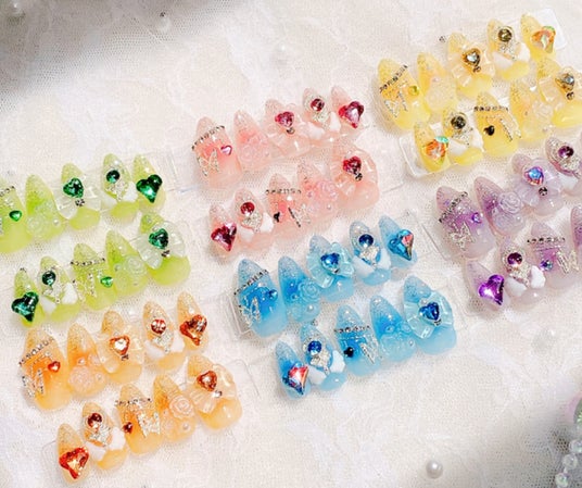 La pucelle/指先を可愛くデコる♪ビジューやストーンを使用して特別感のあるネイルチップを提案する。