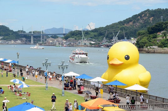 久し振りに関西圏外へお出かけ《ラバー・ダック》は、2012年に広島県・尾道市で開催された「海フェスタおのみち海の祭典2012 尾道・福山・三原」以来、13年ぶりに関西圏外で展示されます。新しい景色の中に浮かぶ《ラバー・ダック》に是非会いに来てください。
