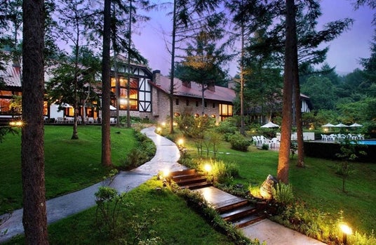 ホテル周辺には四季折々に表情を変える庭園が広がり、森林のなかを心地よくウォーキングすることができます。夜にはラウンジの暖炉の灯りがくつろぎの時間を演出します。地元の食材を生かしたお料理を楽しみながら、自然の静けさの中でゆっくりとお過ごしいただけます。
