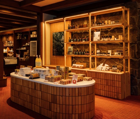 ホテル館内のショップをリニューアルいたしました。蓼科の自然やカラマツの質感を感じられる、ウェルネスな商品をはじめ、この土地の美味しさを味わえる逸品をご用意しております。