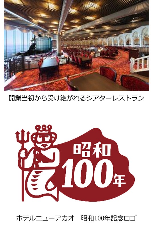 そして2025年に“数え年で昭和100年”という節目を迎えることを記念し、館内の随所で親しまれてきた“ポセイドン”のイラストをモチーフにロゴを作成しました。ホテルニューアカオの海にせり出した特徴的な建築技法や、豪華客船をイメージしたデザインを象徴する海の神“ポセイドン”のマントに「昭和100年」の文字をあしらい、節目の年を熱海の観光と共に盛り上げてまいります。